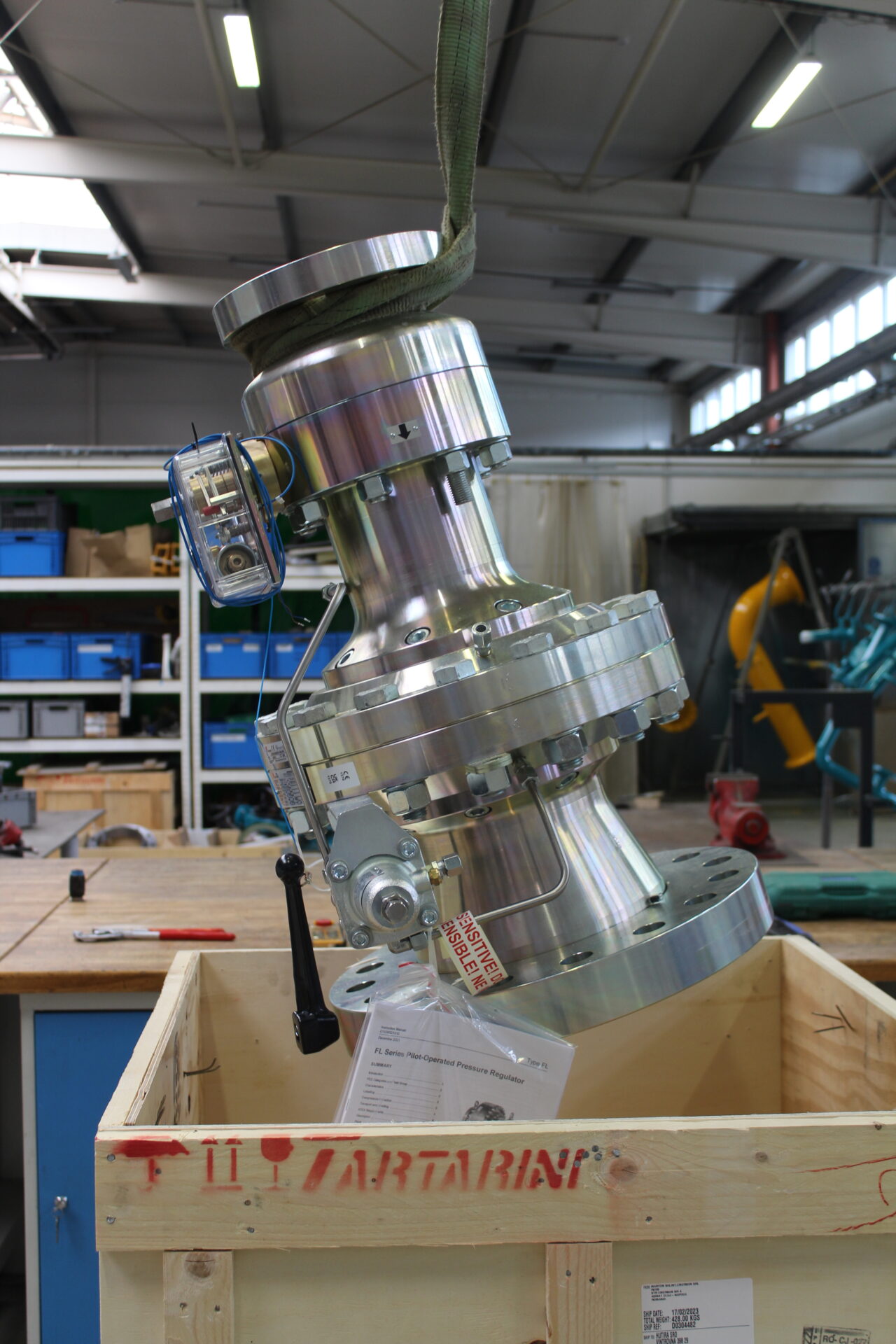 Sestava Bezpečnostní rychlouzávěr BM5/100 DN 100 ANSI 600 a Regulátor tlaku s bezpečnostním rychlouzávěrem a tlumičem hluku BFL/100×250-SRS DN 100 ANSI 600 od společnosti TARTARINI (EMERSON)